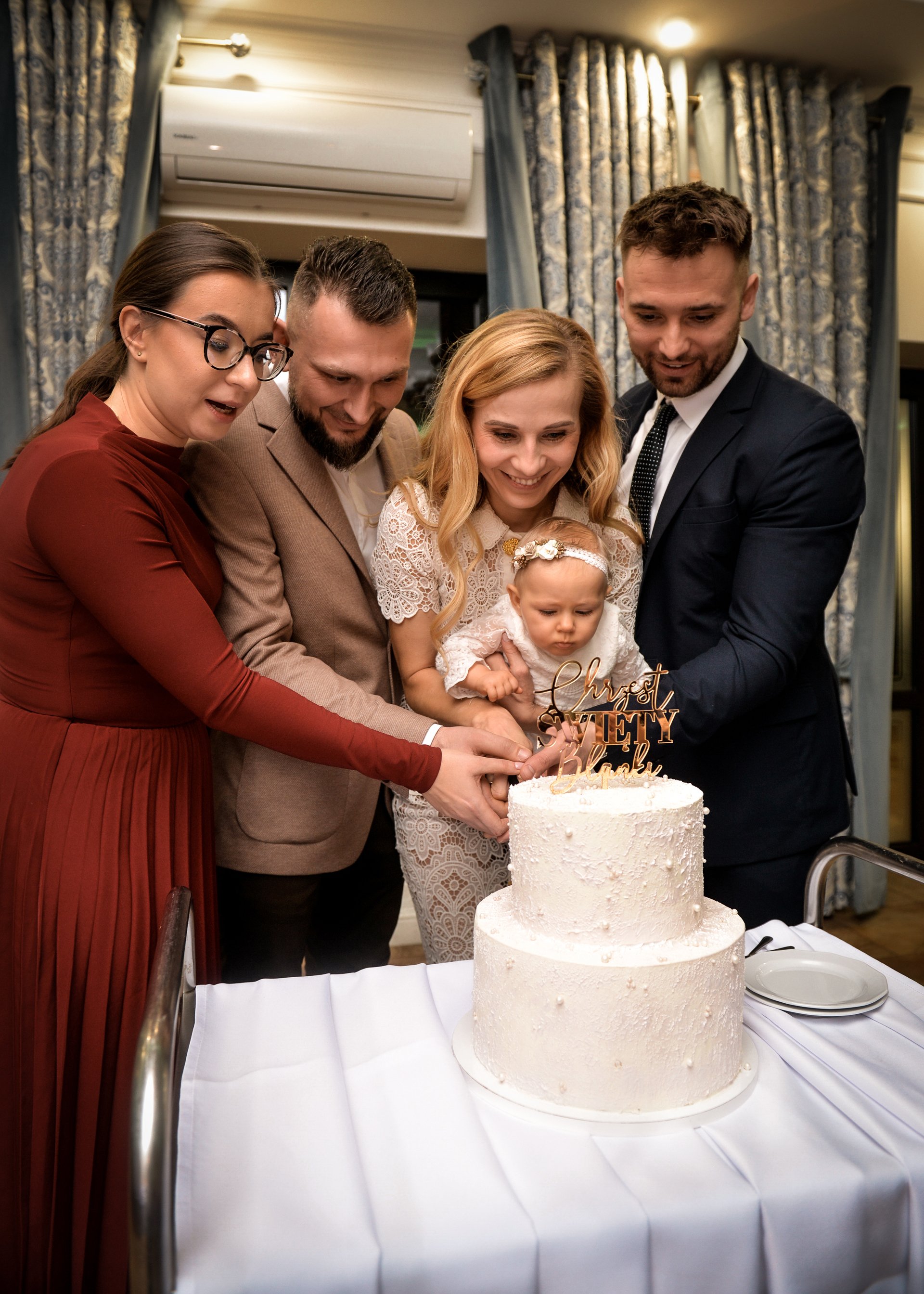Profesjonalna fotografia chrztów — od sesji aniołka, przez ceremonię w kościele, po rodzinne przyjęcie.